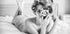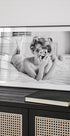 En stilig svart-hvitt plakat som fanger et retroinspirert portrett av en kvinne med vintage hårruller, liggende elegant på en seng mens hun holder et klassisk kamera. Med en blanding av sensualitet, nostalgi og kunstnerisk uttrykk, hyller fotografiet kvinnelig tiltrekningskraft og tidløs glamour.