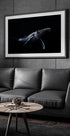 Et kraftfullt lavnøkkel-underwater-fotografi av en majestetisk knølhval, som svømmer elegant gjennom havets mørke dyp. Dette dramatiske kunstverket fanger både størrelsen og skjønnheten til en av naturens sanne kjemper, og passer perfekt for å skape en dristig og inspirerende atmosfære i ethvert rom.