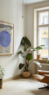 Blue Echoes av Athene Fritsch forener minimalisme og natur: konsentriske blå ringer pulserer over et sort-hvitt landskap av snødekte fjell. Den sterke kontrasten skaper dybde og bevegelse, som ekko i vinterluft. Et moderne blikkfang som gir ro og karakter til stue, gang eller kontor. Perfekt til skandinavisk interiør.