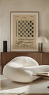 En stilren plakat som gjengir et checker- og sjakkbrett-patent fra 1921, av Andreas Magnusson. Detaljerte tekniske skisser, nummererte figurer og tidstypisk typografi gir et grafisk, monokromt uttrykk. Perfekt for spillentusiaster og retro-elskere som vil sette spillhistorie på veggen. Et tidsriktig blikkfang i hjem, kontor eller spillrom.