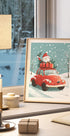 Christmas Road Trip av Andreas Magnusson fanger julemagien på vei: en rød bil lastet med gaver krysser et snødekt landskap, mens barn speider ut av vinduene med forventning. Glitrende lyslenker og spor i snøen vekker reisefeber, nostalgi og lykke – en varm hyllest til julens eventyr. Perfekt for stua i høytiden.