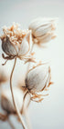 Et mykt og fredelig nærbilde av tørkede blomster i kremfargede beige toner. Med sitt elegante minimalisme og rolige uttrykk gir dette kunstverket en følelse av stillhet og raffinert skjønnhet, perfekt for moderne interiører.
