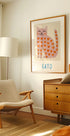 Si hola til Gato – en sjarmerende plakat av Merel Takken: en myk, beige katt med lekne hjerter i rosa og rødt som danser rundt. Den enkle, varme paletten gir ro og glede, perfekt for barnerom og leken stuekrok. Et hint av spansk sjarm og naivistisk minimalisme gjør motivet tidløst og koselig. Perfekt som gave.