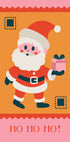 En nostalgisk juleillustrasjon av selveste julenissen med en gave i hånden, omgitt av varme rødfarger, granbar og et grafisk preg som roper Ho ho ho. Retro uttrykk og lekne detaljer skaper forventning og glede – perfekt til adventstiden, barnerommet eller stua. Gir en hyggelig julestemning og passer like godt i entréen som over peishylla.