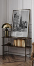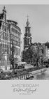 Et stilig, monokromt bymotiv av Amsterdam der Munttoren trer frem langs Singel-kanalen. Sykler, vann og historiske fasader gir ekte bypuls, mens en subtil typografisk detalj fremhever byens navn. En moderne, grafisk fotokunst av Melanie Viola som kombinerer reiselyst og urban eleganse. Perfekt for alle som elsker ikoniske bylandskap.