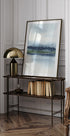 Indigoforestii av Rachel Elise fanger et stille landskap badet i blå indigotoner. Tåke driver lavt over en speilblank innsjø, mens slanke trær og myke gresskanter tegner rolige silhuetter mot himmelen. Skyer og dis smelter sammen i et drømmende skift, perfekt for å skape en zen-lignende atmosfære hjemme.