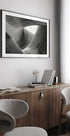 Peter Pfeiffers Lines tolker en berlinersk stålskulptur i dramatisk sort-hvitt: bølgende kurver og presise linjer leder blikket i et rytmisk spill av lys og skygge. Den minimalistiske komposisjonen balanserer ro og spenning, og gir rommet et moderne, grafisk fokus med arkitektonisk tyngde. Skapt av fotografen Peter Pfeiffer i Berlin.