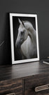 Maggie av Avishai Avivi er et rolig, minimalistisk portrett av en grasiøs hoppe. Det myke linjespillet i hals og man skaper en harmonisk bevegelse, mens nøytrale toner og subtile kontraster gir motivet tidløs eleganse. En stilren hyllest til hestens styrke og vennlighet. Passer perfekt i stue, soverom eller kontor.