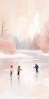 Schlittschuhlaufen av Ohkimiko fanger vinterens stille magi: barn som sklir over en frossen innsjø, omkranset av snødekte trær og myke pastelltoner. Scenen oser ro, lek og adventsstemning, og bringer et snev av juleglede og naturnær nostalgi til hjemmet. Perfekt som vinterlig midtpunkt i stue, barnerom eller hytte.