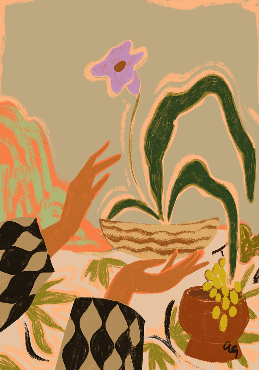 - Trykkes på slitesterkt bomullslerret med naturlig tekstur