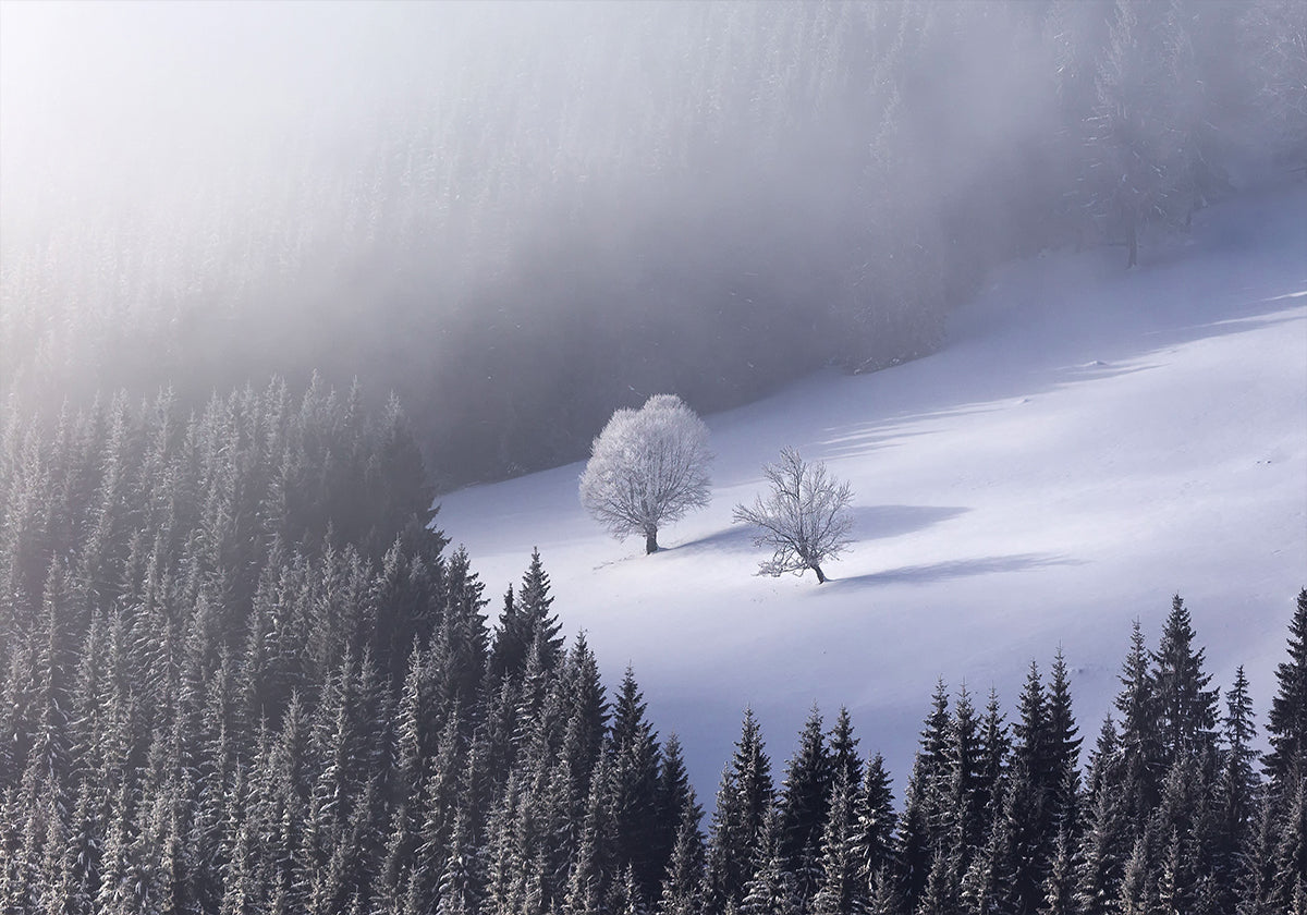 En tåkedekt fjellskog reiser seg som stille krigere, der snødekte furuer står tett i frost og morgendisen demper lyset. The Warriors av Lazar Ioan Ovidiu fanger vinterens ro i rumenske høyder – et poetisk landskap av melkete tåke, mørke trestammer og fjellkonturer som forsvinner i stillhet. En stille hyllest til naturens styrke.