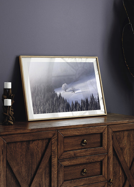 White matte: Motivet trykkes med en hvit, matt kant rundt motivet. Dette gir et rent og elegant uttrykk som fremhever motivet og gir et galleri-inspirert utseende.