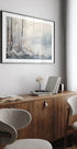 Winter av Bilge Paksoylu fanger et stillferdig, skandinavisk vinterlandskap: tåkedis over en speilblank innsjø, snødekte trær som reiser seg fra hvite bredder, og myke, dempede toner av grått og hvitt. Et minimalistisk og drømmende motiv som gir ro, dybde og nordisk eleganse til ethvert rom. Perfekt over sofa, seng eller i gangen.