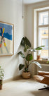 WINTER av Sergio Ortiz fanger følelsen av klar fjelluft: et grafisk, geometrisk vinterlandskap der snøkledde fjell reiser seg i dype blåtoner, mens små skiløpere skjærer spor gjennom bakkene. Minimalistiske former og friske kontraster gir motivet energi, ro og en moderne, nordisk stemning. Perfekt som vinterlig blikkfang i stue, gang eller hytte.