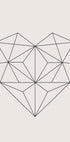 En minimalistisk illustrasjon av et geometrisk hjerte, designet med rene, kantede linjer som danner en symmetrisk form. Med en myk beige bakgrunn uttrykker dette moderne kunstverket kjærlighet, balanse og enkelhet. Et stilig og moderne element til ethvert rom, perfekt for elskere av skandinavisk og abstrakt design.