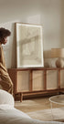 En raffinert og moderne plakat av Lucrecia Caporale: elegante, håndtegnede linjer svever over myke, organiske flater i nøytrale jordtoner. Den rolige komposisjonen skaper balanse og stillhet, med subtile former som antyder menneskelige silhuetter. Perfekt som et sofistikert blikkfang i minimalistiske interiører.