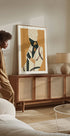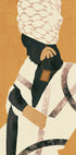 En slående minimalistisk plakat som viser en elegant afrikansk kvinne med dristige smykker og et mønstret hodeplagg. De jordnære gule og svarte tonene blander moderne abstraksjon med kulturell rikdom, noe som gjør den til et kraftfullt innslag i moderne og boho-inspirerte interiører.