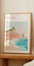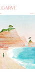 En lys og inspirerende plakat av Algarve, Portugal, som viser gylne klipper, turkist hav og en rolig strandtur. Med delikate pastelltoner og kystsjarm fanger dette kunstverket essensen av sommerferier, europeisk skjønnhet og rolige kystlandskap.