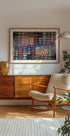 Amsterdam 40 av Igor Shrayer forener kanalhus, vinduer og vann i en fargerik, surreal komposisjon. Grafiske fasader speiler seg i elven og skaper en drømmende byscape der arkitektur blir mønster og rytme. Et levende portrett av Amsterdam som pulserer av farger, refleksjoner og urban poesi. En hyllest til byens magi og moderne kunst.