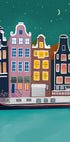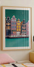 Amsterdam by night fanger den ikoniske kanalbyen i dyp blå og teal toner: ranke gavlhus speiler seg i stille vann, mens båter glir under varme brolys. Den grafiske illustrasjonen av Petra Lizde forener urban ro og reisefeber, og blir et stemningsfullt blikkfang for alle som elsker Amsterdams pulserende kvelder.