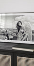 Et dramatisk svart-hvitt kunstverk av en kvinne med englevinger som skuer ut over en enorm byhorisont. Med en blanding av fantasi og urban realisme fremkaller dette slående bildet styrke, skjønnhet og mystikk – en engleaktig tilstedeværelse mot metropolens moderne silhuett.