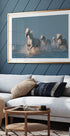 Et kraftfullt fotografi av de ville hvite hestene i Camargue, fanget i det de galopperer gjennom bølgene. Vanndråper glitrer i luften og fremhever styrken, bevegelsen og den ville ånden deres. Denne betagende scenen uttrykker frihet, energi og naturens tidløse skjønnhet.