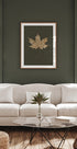 En rolig og minimalistisk akvarellposter med et enkelt lønneblad mot en dyp, jordnær bakgrunn. De myke fargelagene i varme beige- og gulltoner fremhever bladets fine årer og naturlige detaljer, mens den teksturerte bakgrunnen gir et koselig og eksklusivt uttrykk. Det sentrerte motivet gjør plakaten tidløs og lett å style i moderne, nordiske, rustikke eller naturinspirerte hjem. Perfekt som høstdekor, men også som et diskret botanisk innslag hele året.