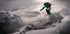 Et fantastisk actionbilde av en skiløper som utfører et dristig hopp i villmarken, omgitt av snødekte topper og dramatiske skyer. Den dynamiske komposisjonen fanger spenningen ved vintersport, frihet og adrenalin midt i den alpine villmarken. Perfekt for eventyrere, skielskere og fans av ekstremsport.