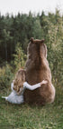 Et varmt, eventyrlig portrett av en ung kvinne som omfavner en brunbjørn i skogens stille lys. Drømmende toner og myke kontraster skaper en følelse av trygghet, vennskap og fantasi. Fotografert av Olga Barantseva, en hyllest til tillit, naturens skjønnhet og barndommens drømmer. Et blikkfang for stue, barnerom og galleri.