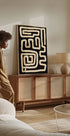 Et dristig abstrakt kunstverk med slyngende beige linjer på en dyp svart bakgrunn, som skaper en labyrintlignende effekt. Den sterke kontrasten og det moderne designet gjør det til et slående midtpunkt for moderne interiører — perfekt for å tilføre grafisk uttrykk til en stue, gang eller kontor.