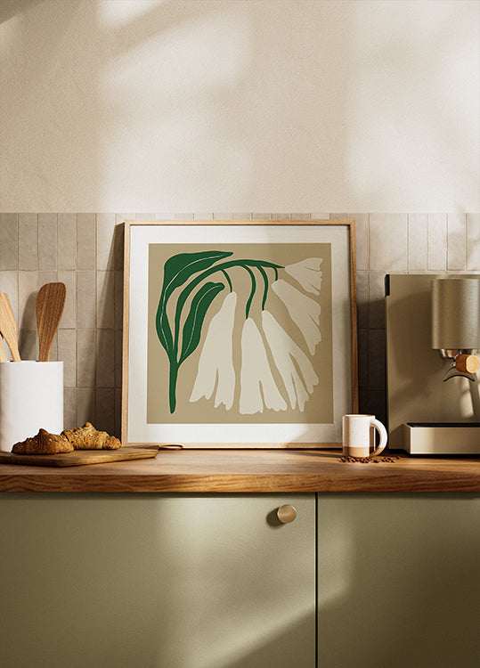 Big Blooming IV av Miho Art Studio er en leken, retroinspirert blomsterplakat der store, grafiske kronblader i oransje, blått og rosa vokser frem i en Matisse-aktig minimalisme. En frodig, botanisk komposisjon som stråler glede og sommer, perfekt for å gi rommet farge, varme og nostalgisk 70-tallsstemning.