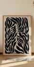 En dristig og elegant plakat med abstrakte svarte blad-silhuetter på beige bakgrunn. Dette minimalistiske botaniske kunstverket kombinerer organiske former med sterke kontraster, perfekt for moderne og samtidsinteriør.