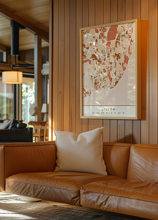Oppdag Lisboa i et poetisk, jordtonet kart av Emiliano Deificus. Svart linjeføring tegner elvebredden, broene og de svingete gatene, mens nabolagene ligger lag på lag som et moderne byrelieff. En minimalistisk, sofistikert vegverk som forener kartografisk presisjon med varm, urban stemning. Perfekt for moderne, byelskende hjem.