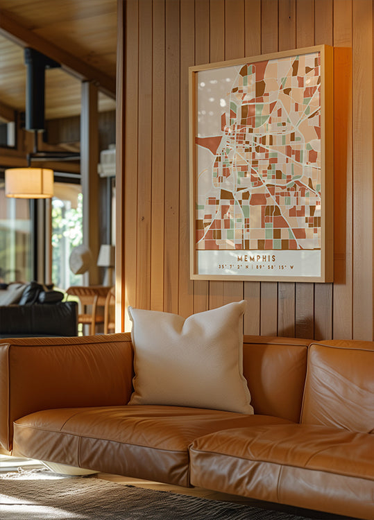 Et stemningsfullt, grafisk kartmotiv i jordnære toner: svarte gater og elvebuer tegner byens pulserende rutenett, mens subtile teksturer gir dybde og ro. Inspirert av Memphis, Tennessee, skaper Emiliano Deificus en elegant urban atmosfære som passer både minimalistiske og varme interiører. Perfekt som fokuspunkt på veggen.