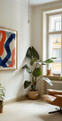 Et uttrykksfullt, moderne motiv med dristige penselstrøk og leken linjeføring. Dype marineblå toner møter varme nyanser av beige og oransje, og skaper en harmonisk kontrast. Abstrakt og minimalistisk på samme tid, denne kunstplakaten tilfører energi, balanse og rytme til enhver vegg. Perfekt som blikkfang i stue, gang eller kontor.