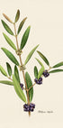 En tidløs botanisk illustrasjon av Phillyrea latifolia, gjengitt med fine detaljer og klassisk eleganse. Dette vintage-trykket fanger naturens skjønnhet med bær og blader, og gir en sofistikert stemning i ethvert interiør. Perfekt for naturelskere og klassisk botanisk kunst.