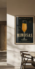 En vintage-inspirert art deco-plakat med et glass med bunnløse mimosas og leken typografi. Perfekt for kjøkken, barer eller brunch-rom, feirer dette trykket champagne, appelsinjuice og cocktailenes glede. En livlig veggkunst som gir sjarm til fester og sammenkomster.