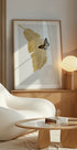 Et raffinert minimalistisk kunstverk med et gyllent palmeblad og en delikat detaljert monark-sommerfugl. Den rene komposisjonen kombinerer tropisk eleganse med naturlig symbolikk, og gjør dette til et tidløst botanisk motiv perfekt for moderne eller rustikke interiører.
