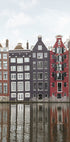 Fang sjarmen fra Amsterdam med en plakat av Henrike Schenk: fargerike kanalhus i tett rekke speiler seg i det stille vannet, med smale gavler, blanke vinduer og en livlig bypuls i bakgrunnen. Et blikkfang som gir hjemmet ditt reiselyst, varme og urban eleganse – perfekt alene eller i en galleri-vegg.