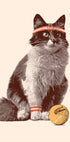 En leken plakat i vintagestil som viser en fluffy katt utkledd som tennisspiller, komplett med svettebånd og en Wilson-tennisball. Det humoristiske og stilige designet kombinerer sport med katteaktig sjarm og gjør dette til et morsomt og iøynefallende kunstverk for dyreelskere og sportsfans.
