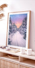 En snødekt skogsvei leder blikket mot fjerne fjell under en dramatisk, rosalilla vinterhimmel. Iskalde graner rammer inn perspektivet, og stillheten ligger tykk som fløyel – et øyeblikk av ekte julefred. Christmas feeling av Christian Lindsten fanger nordisk ro, lys og lengsel. Perfekt til julestemning i stue, hytte eller gang.