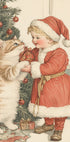 En lun og nostalgisk julescene: Et barn i nisselue og en nysgjerrig katt samles ved et glitrende juletre. Varmt lys, klassiske ornamenter og retro fargetoner skaper en koselig stemning av forventning og vennskap. Perfekt som vinterlig blikkfang i stue, barnerom eller gang – med et snev av humor og en dose julefred.