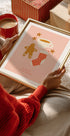 En leken juleplakat som fanger den varme følelsen av desember: en glad pepperkakemann, rykende kakao og snø som daler rundt koselige julestrømper. Myke, vintage-inspirerte farger og morsomme tegndetaljer gir barnevennlig sjarm – perfekt for å spre julestemning i stue, gang eller barnerom. Passer også fint som gave.