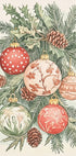 Juleornamenter i varme røde og grønne toner danser blant furunåler og kristtorn i en nostalgisk, malerisk komposisjon. Subtile penselstrøk og et retro preg gir en lun, klassisk julestemning, perfekt til å løfte stue eller gang. Et sjarmerende vintermotiv fra Melloi Art Prints. Skaper glede gjennom hele julehøytiden.