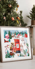 En sjarmerende juleillustrasjon av Caroline Bonne Müller: I et snødekt landsbystrøk leverer en ivrig hund julepost til den røde postkassen, pyntet med gevir og liten krone. Snøfnugg danser, trærne glitrer, og stille gater fylles av forventning. En lun, humoristisk scene som sprer julestemning. Perfekt for barnerom og stue.