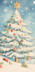 Christmas Tree I av Melloi Art Prints stråler klassisk julestemning: en frodig gran med røde og gylne kuler, glitter og en skinnende stjerne mot dyp blå nattehimmel. Snøfnugg daler stille, gaver venter ved foten – en nostalgisk, varm scene som sprer ro og høytidsglede i hjemmet. Perfekt som juleblikkfang i stue, gang eller barnerom.