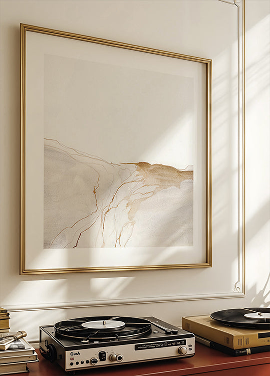 Clarity II av Alma fanger stillheten ved kysten i myke, nøytrale toner. Skisseaktige linjer antyder fjellrygger og sanddyner som glir ned mot en rolig sjø, mens subtile teksturer gir dybde og varme. Et hint av retro møter moderne minimalisme og skaper en luftig ro i rommet. Perfekt for stue, soverom eller hytte ved sjøen.