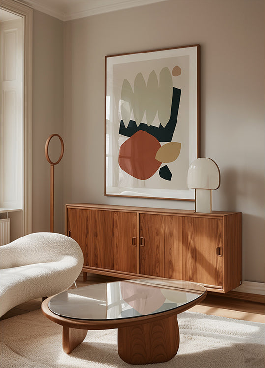 Collage Earth II av Orara Studio er en stilsikker, abstrakt collage som balanserer rene geometriske former i harmoniske jordtoner. Overlappende sirkler og blokker skaper dybde, ro og bevegelse, perfekt for moderne interiør. En tidløs visuell rytme som gir rommet karakter. Passer alene eller i serie, og trekker blikket uten å dominere.