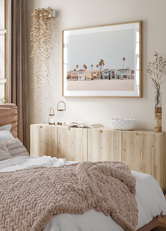 Gi rommet en dose feriefølelse med en fargerik strandscene der slanke palmer vaier over myk sand og klart, blågrønt hav. Kontraster i sterke tropiske toner og rolig horisont skaper en frisk, optimistisk stemning. Perfekt som blikkfang i stue, soverom eller hjemmekontor. Passer like godt alene som i en tropisk bildevegg.