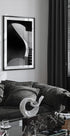 CURVED LINES av fotografen Olavo Azevedo fanger en dramatisk, monokrom studie av arkitekturens bølgende linjer. Myke kurver, skarpe kontraster og dype skygger leder blikket langs en elegant trapp i Lisboa, der lys og geometri møtes og skaper en rolig, minimalistisk rytme på veggen. Perfekt for moderne interiører.